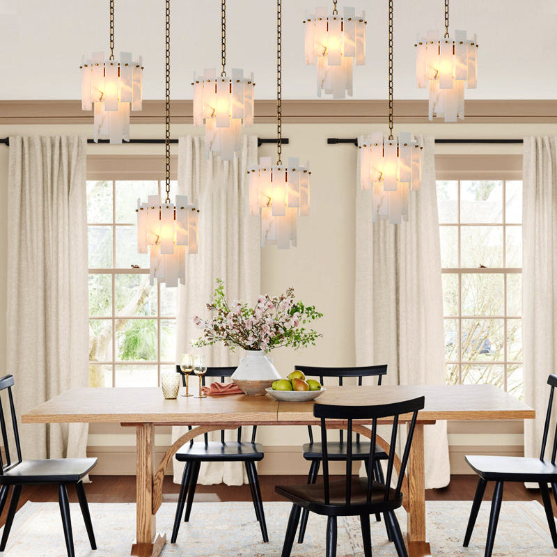 7-light 2-tier Alabaster marble Round Chandelier 13" with adjustable chain 150cm