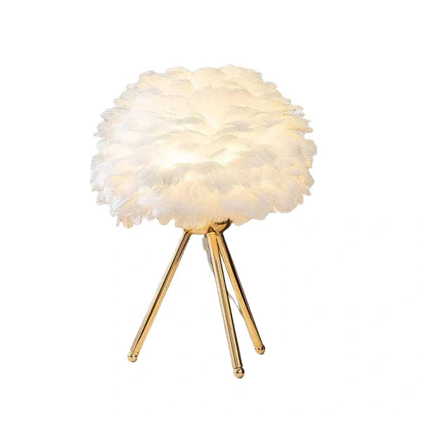Lunara Art Deco Table Lamp – Feather& Metal Tripod Base for Children's Room/Bedroom