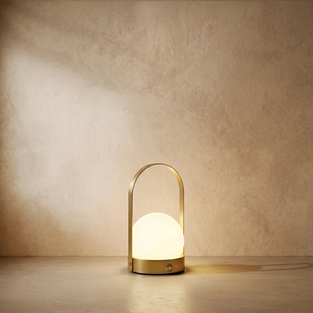 Modern Portable Table Lamp – LED Glass Lantern Light with Handle in Gold, Black or White