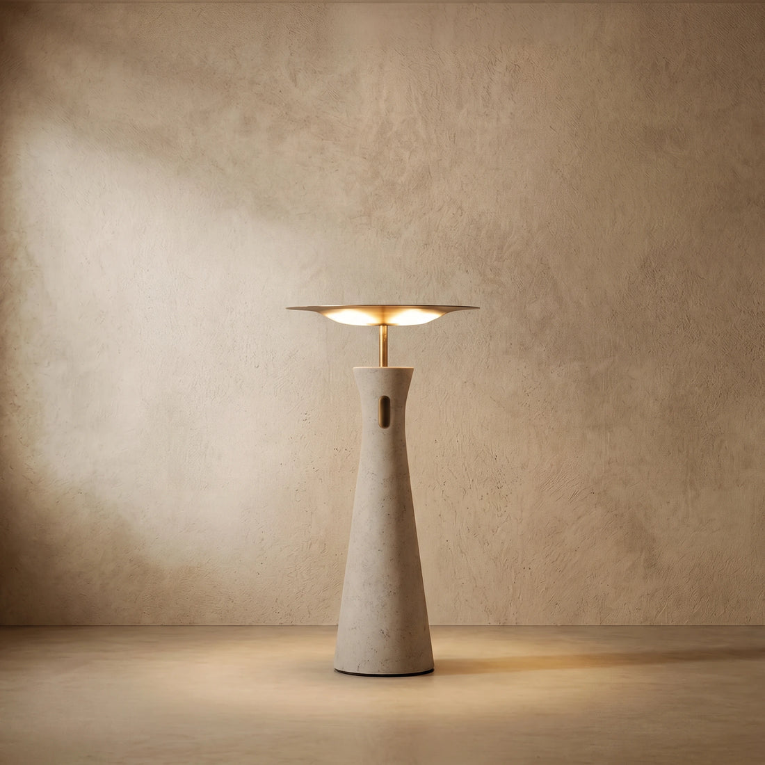 Helpful Details: Crafted from natural yellow travertine stone and polished aluminum, offering a tactile, artisanal...