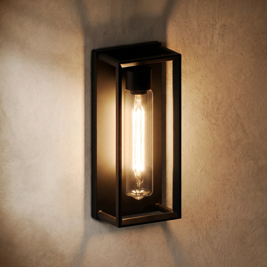 Arcato Modern Outdoor Wall Sconce – Black Stainless Steel with Clear Glass for Porch/Patio