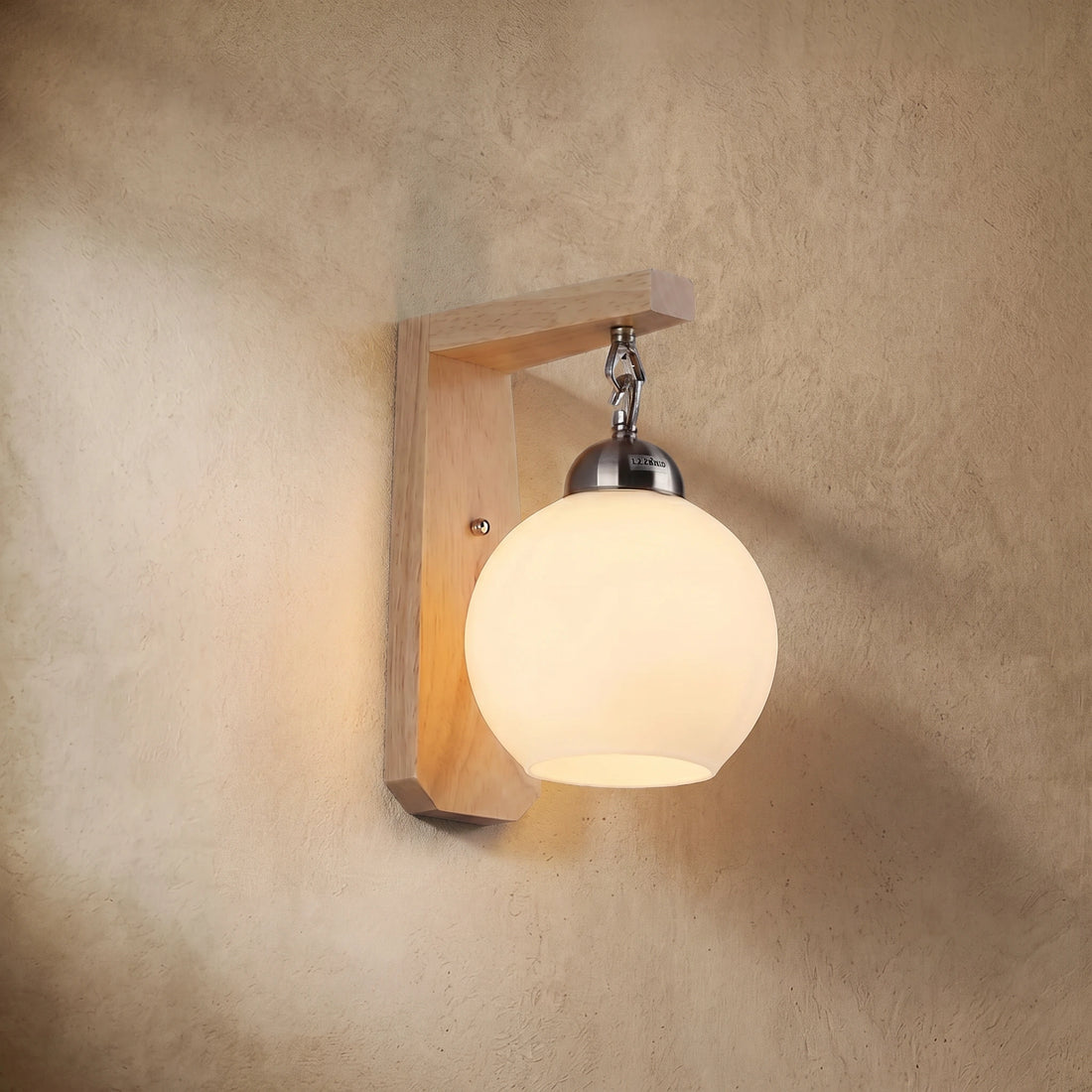 Lunara Nordic Beige Vanity Light – Wood & Metal Frame with Glass Globe for Bedroom