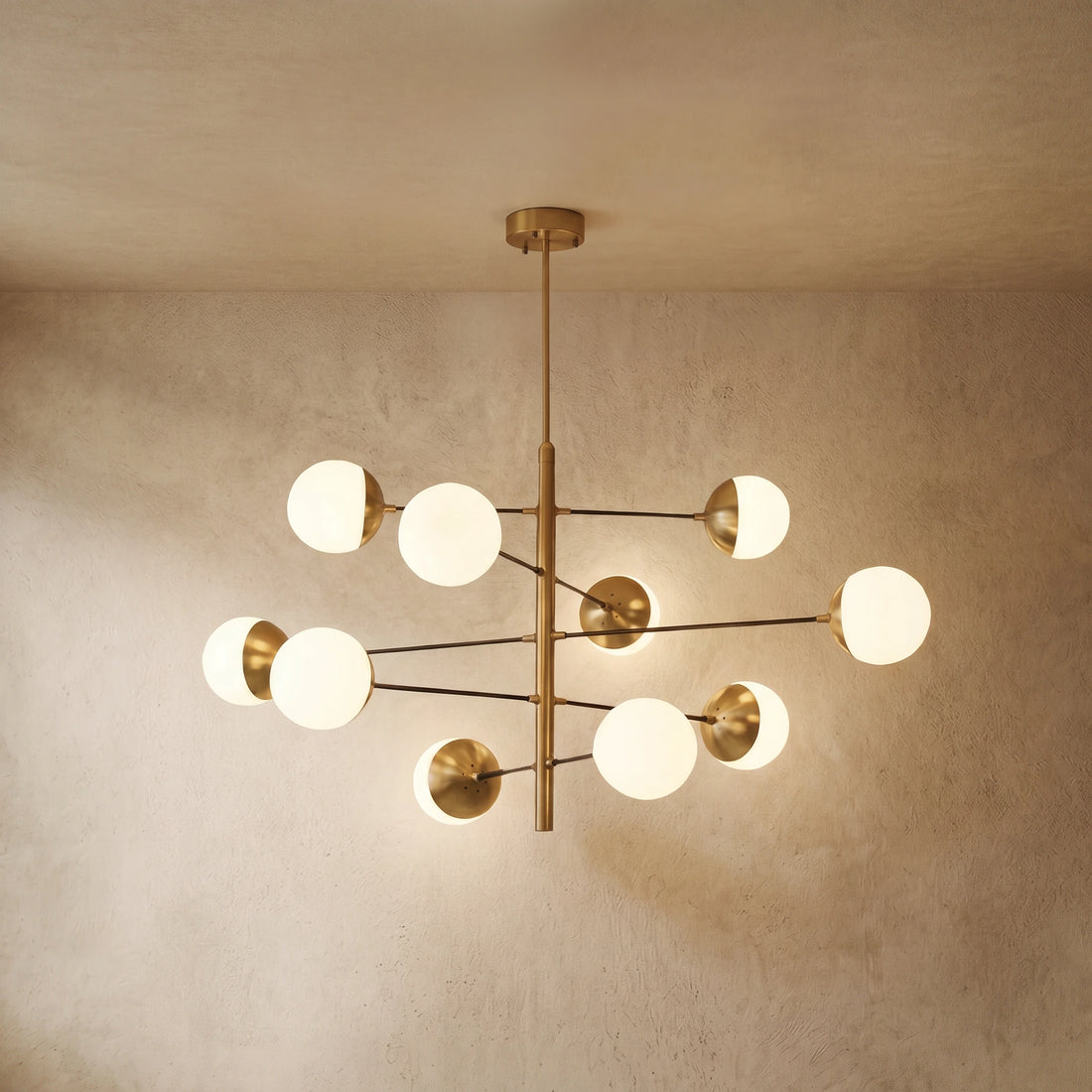 The Aurelian Alabaster Globe Chandelier epitomizes a harmonious blend of design purity and illuminating grace....