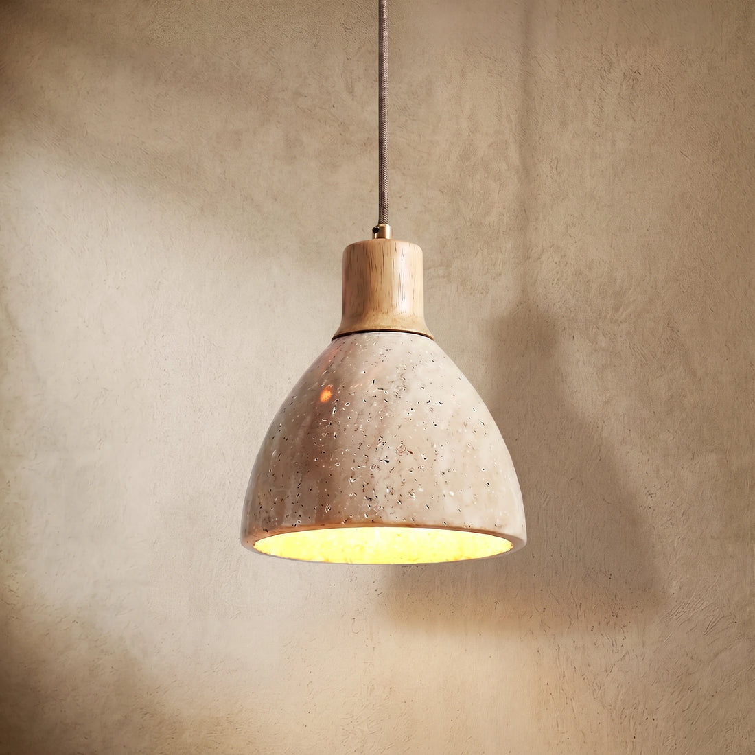 Organic Modern Pendant Light — Textured Stone Resin & Wood Accent for Kitchen Island