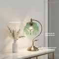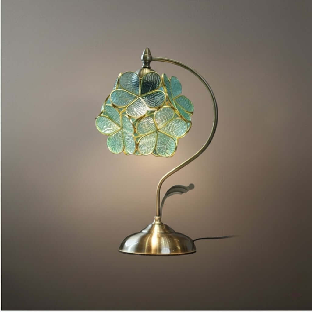 Artisan Leaf-Inspired Desk Lamp — Seafoam Green Glass Leaves & Antique Brass for Home Office