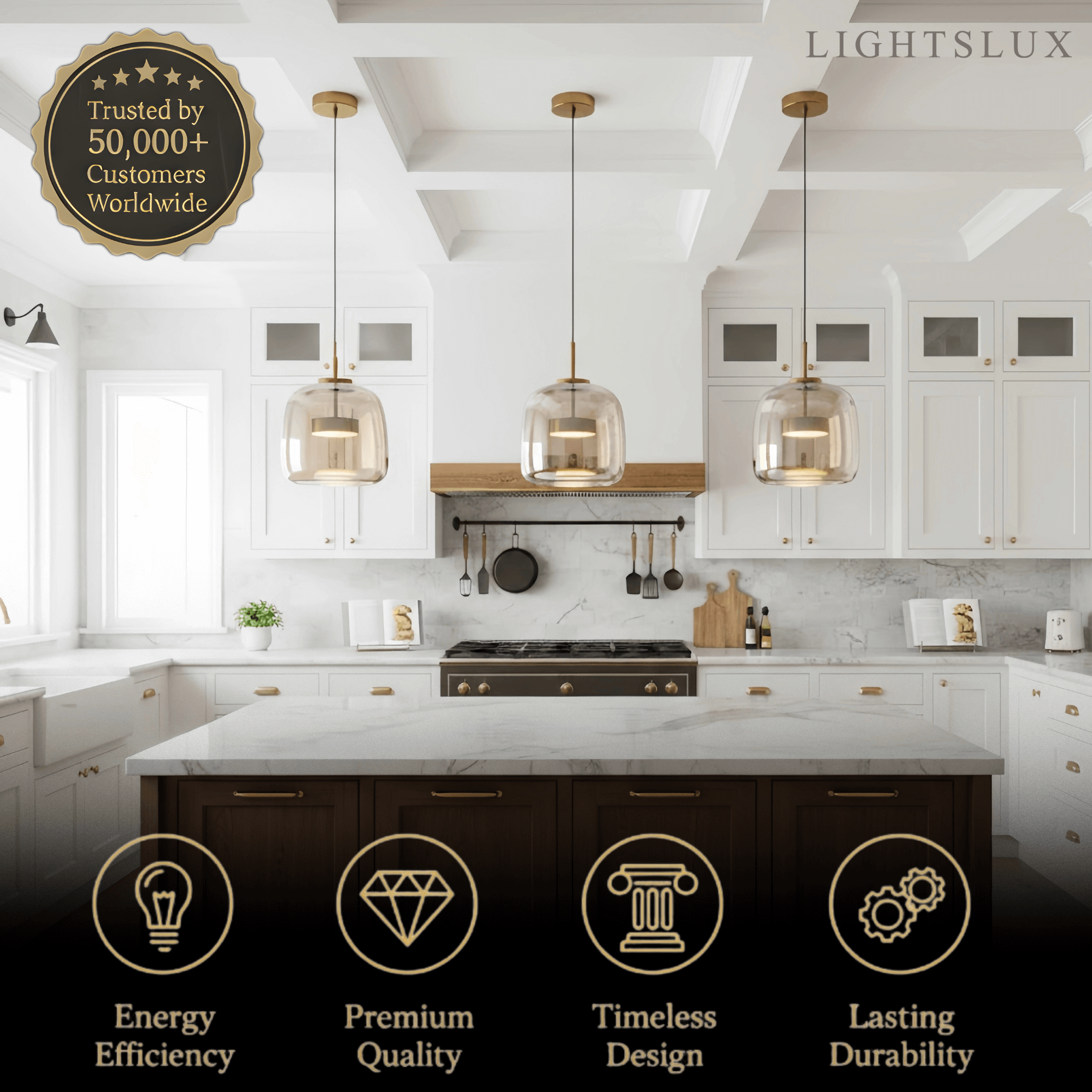 Vetro Modern Pendant Light – Glass in Amber/Smoked for Kitchen/Dining Room