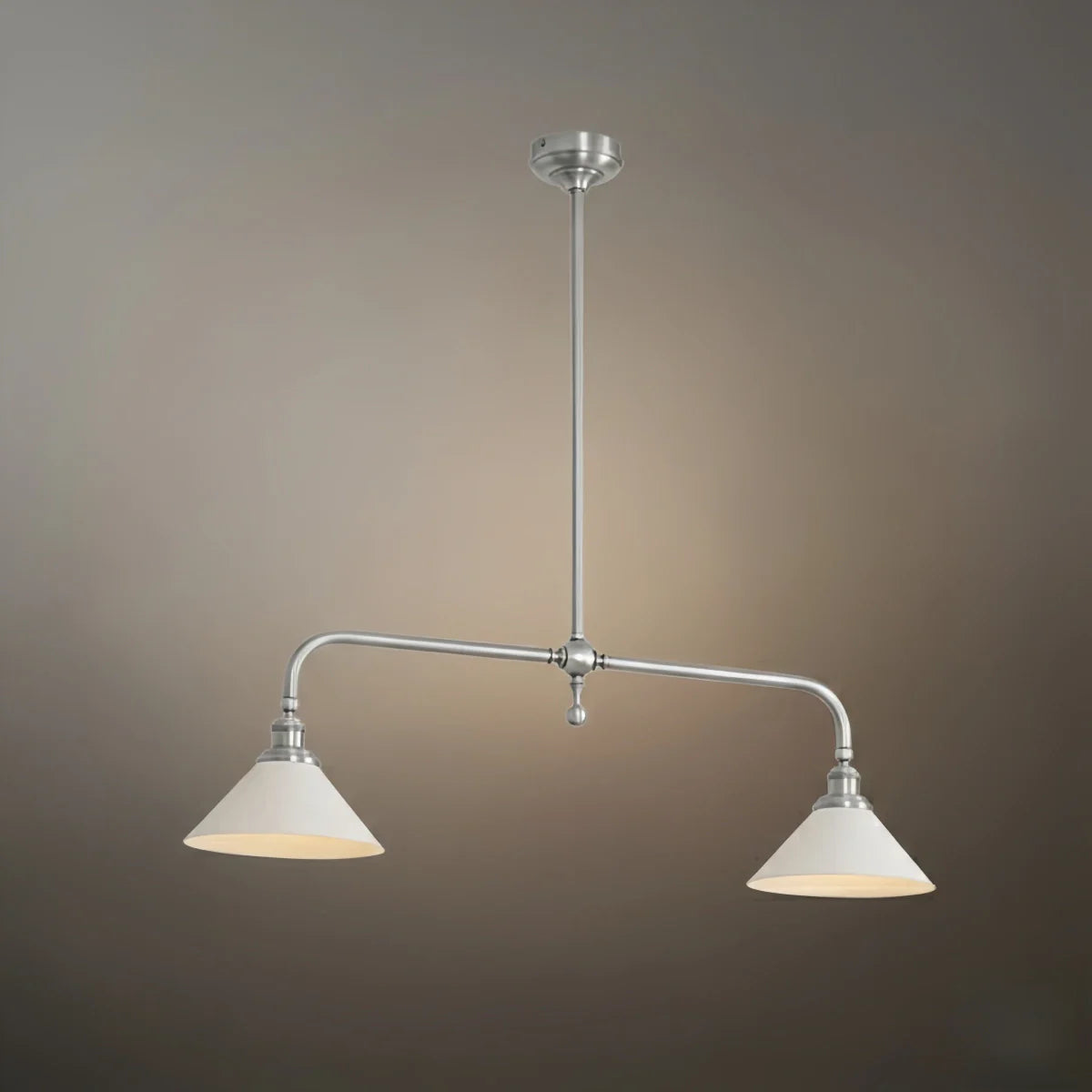 - Brass body paired with white ceramic shades for classic appeal