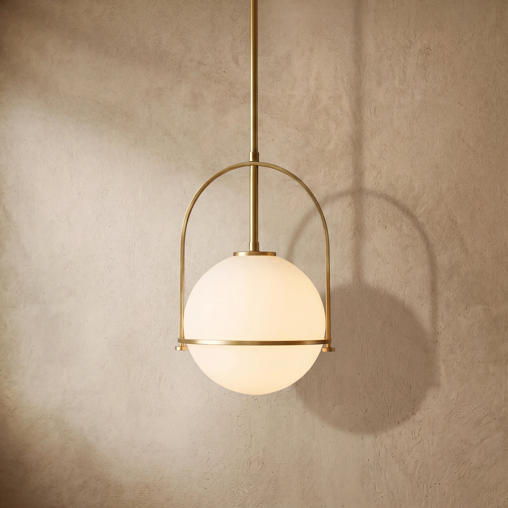 - Finish Options: Polished Brass or Black (body); White etched opal glass (shade)
