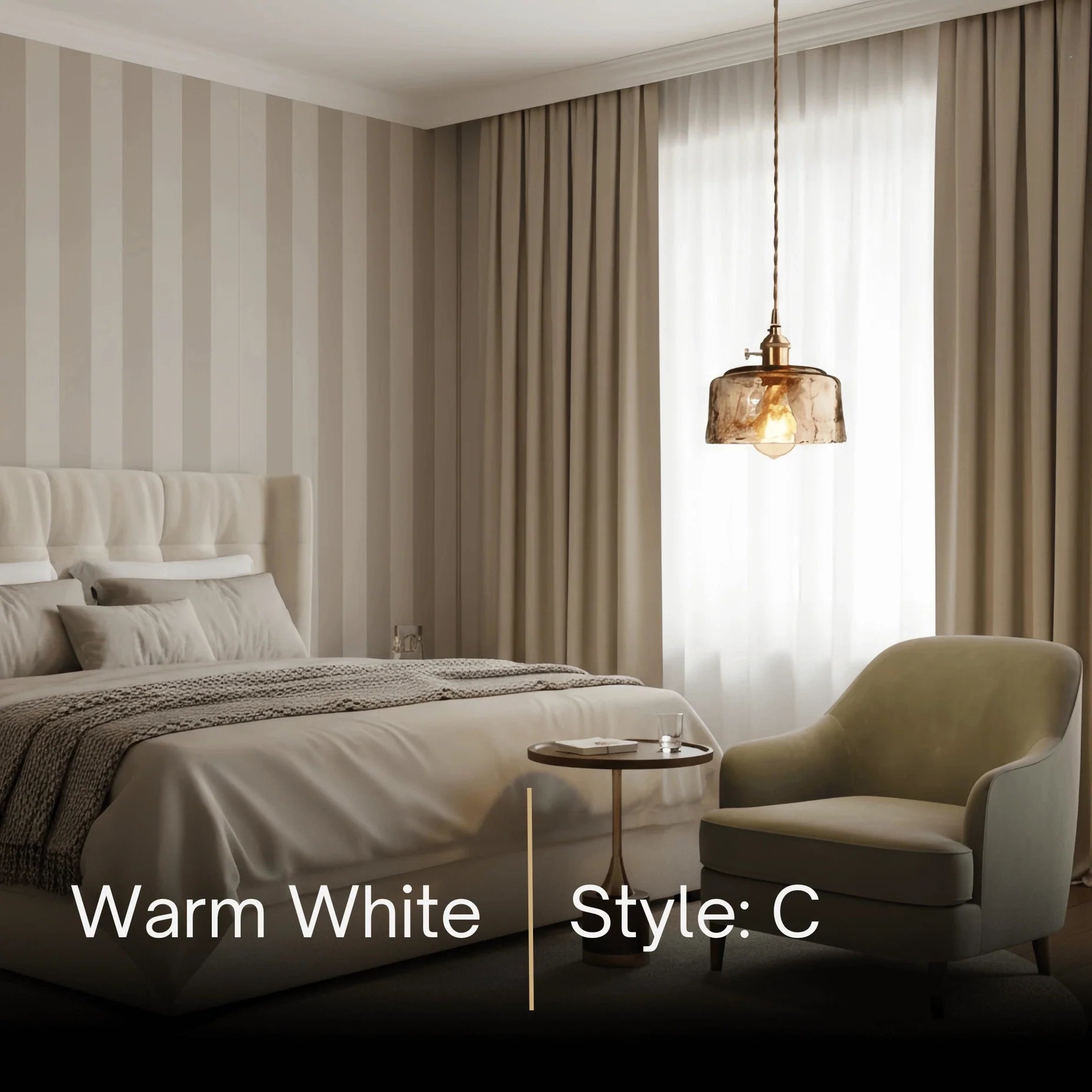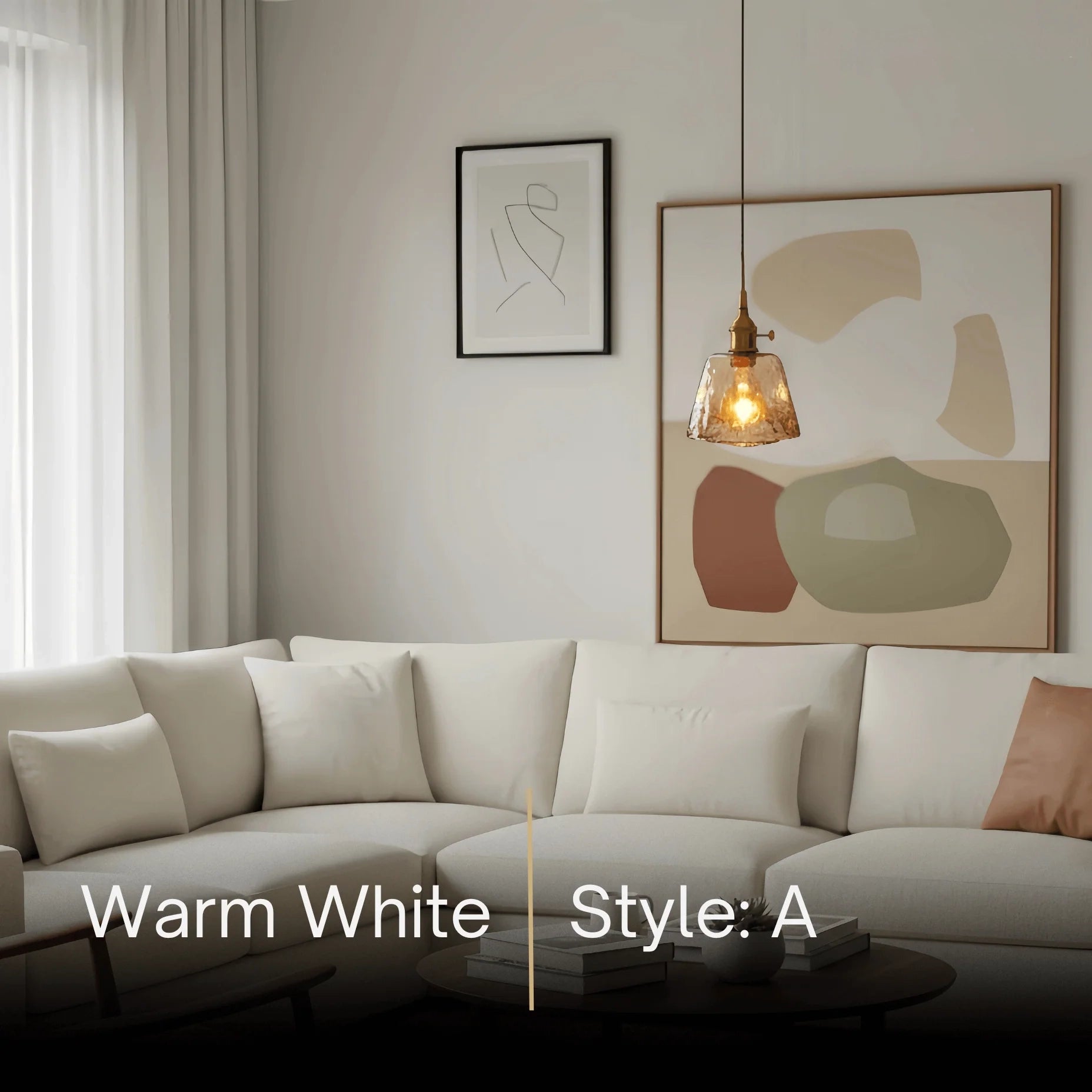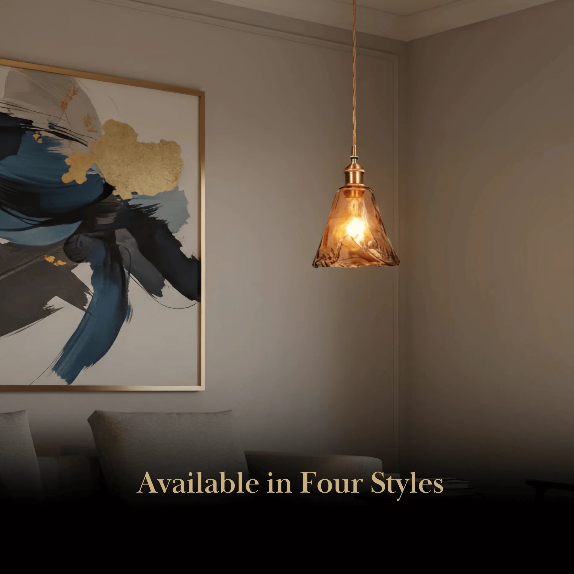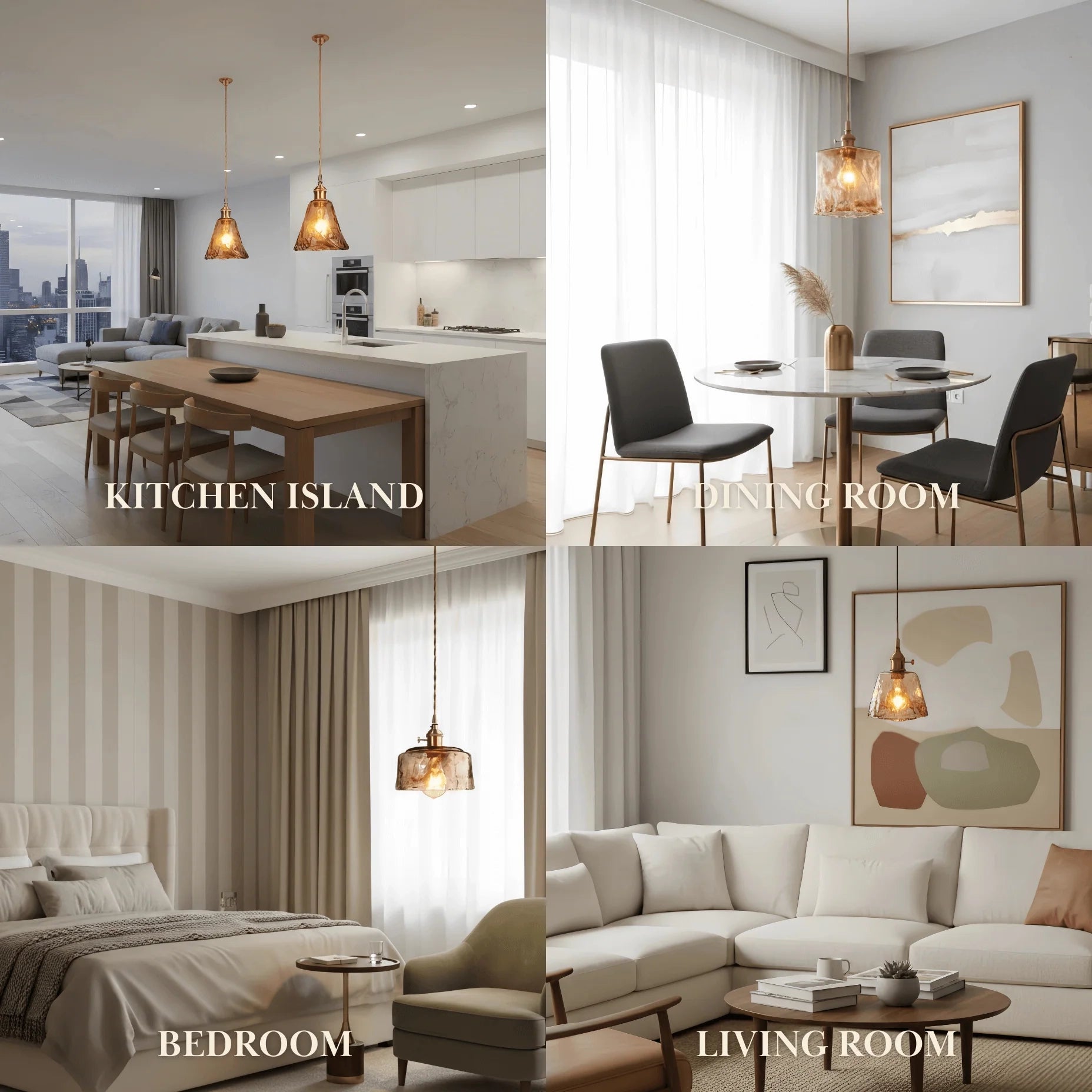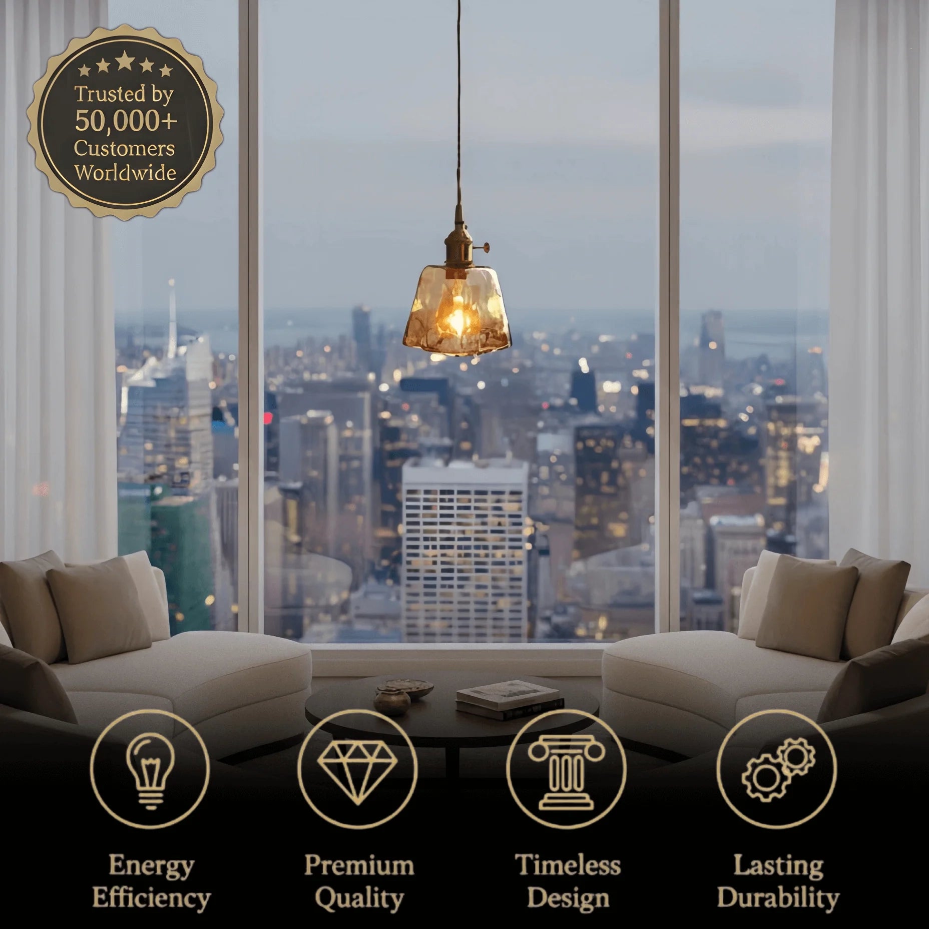 - Warm light emission through amber glass, providing cozy illumination for dining and living areas